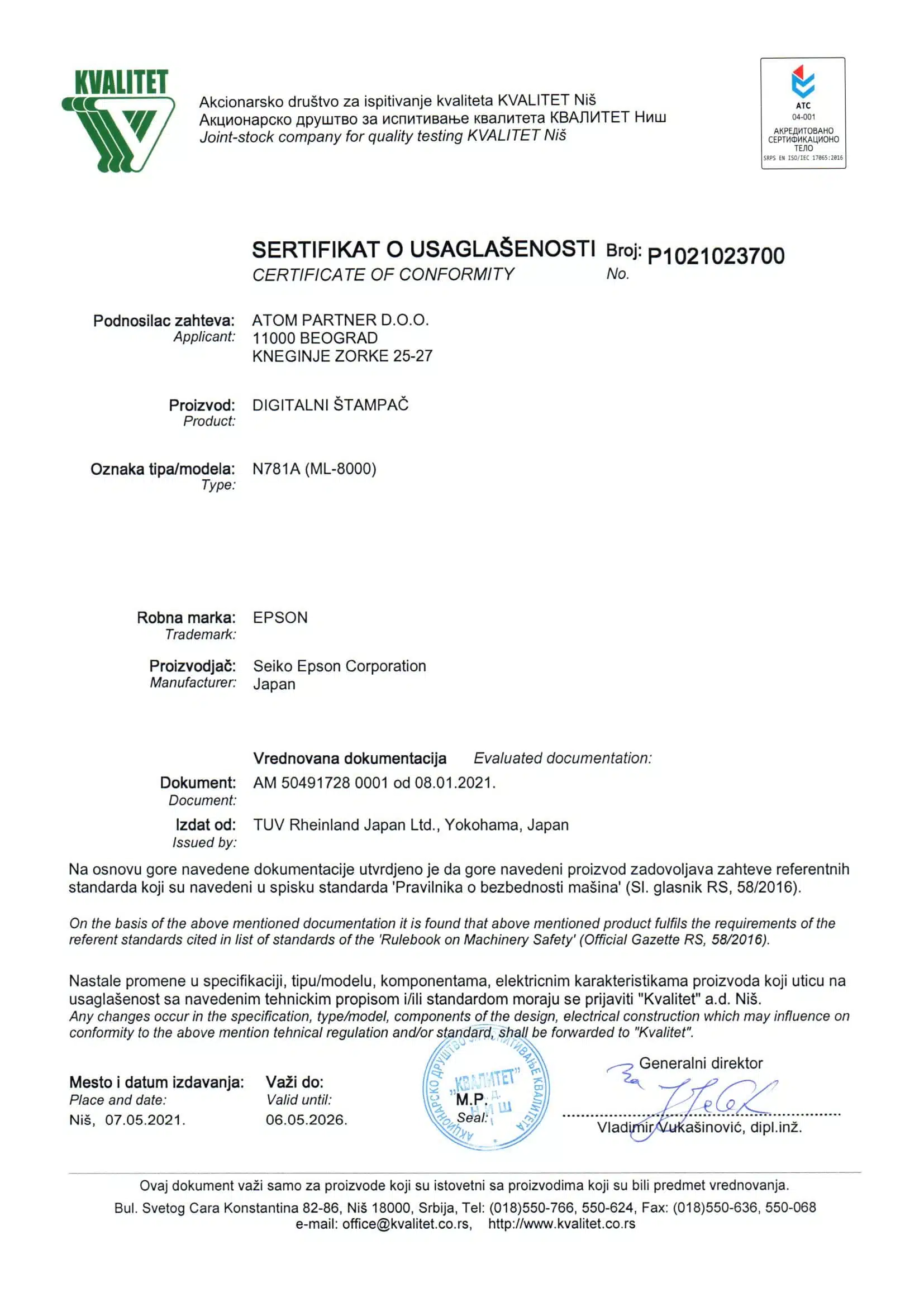 EPSON-Digitalni-stampac-N781A-Bezbednost